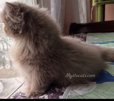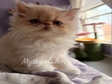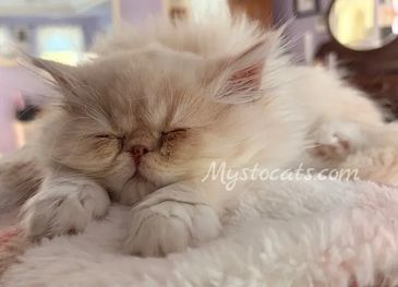 CFA registered flame point Persian and chocolate carrier. Our newest little addition to the cattery that is going to grow into a wonderful stud! More pictures to come as his colors develop.